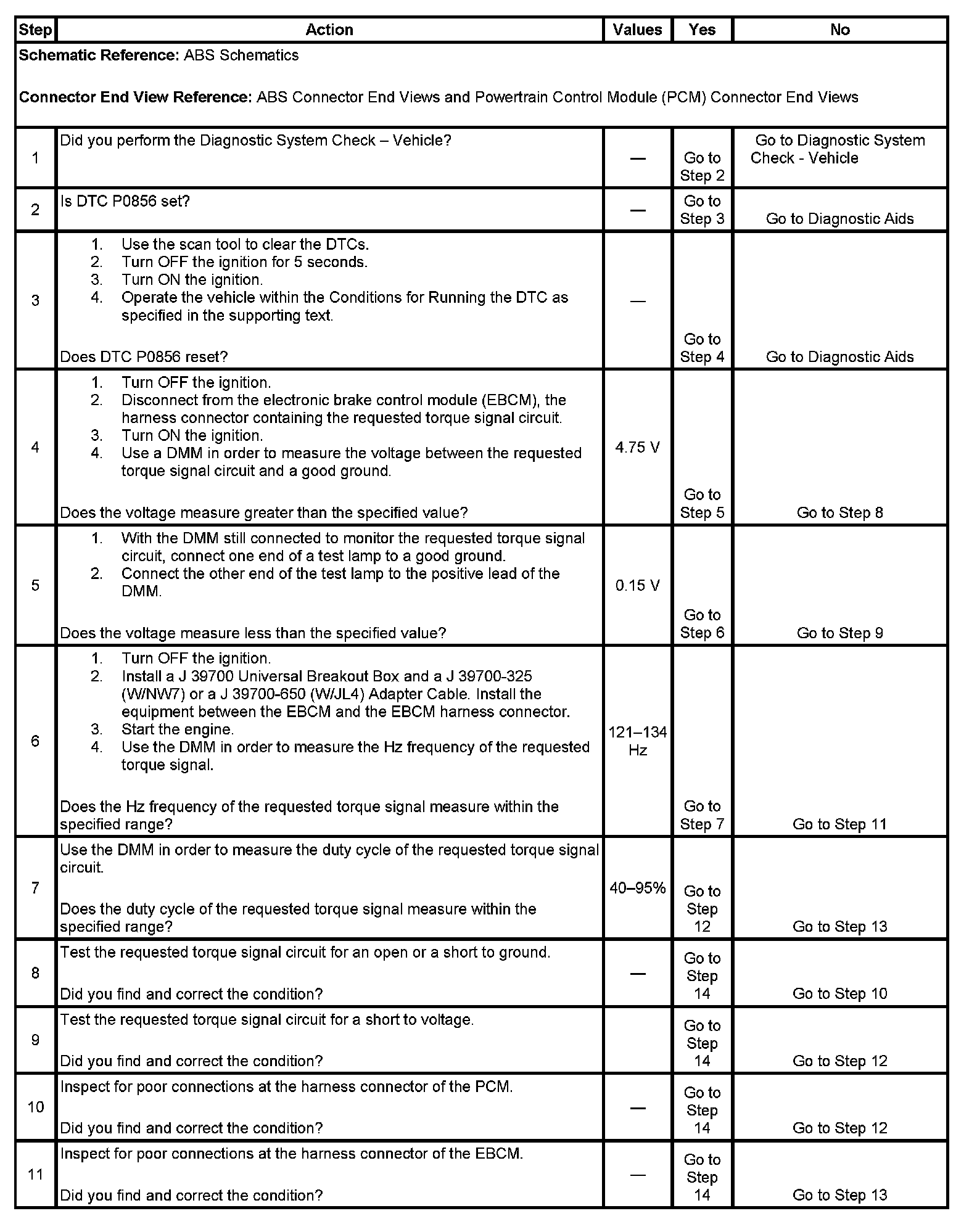 4. This step tests for voltage supplied to the EBCM from the PCM.
