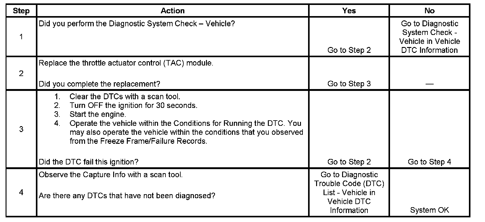- When the TAC module detects a condition within the TAC system, more than one TAC system related DTC may set. This is due to the many redundant tests run continuously on this system. Locating and repairing an individual condition may correct more than one DTC. Disconnecting components during testing may set additional DTCs. Remember this if you review the stored information in Capture Info.