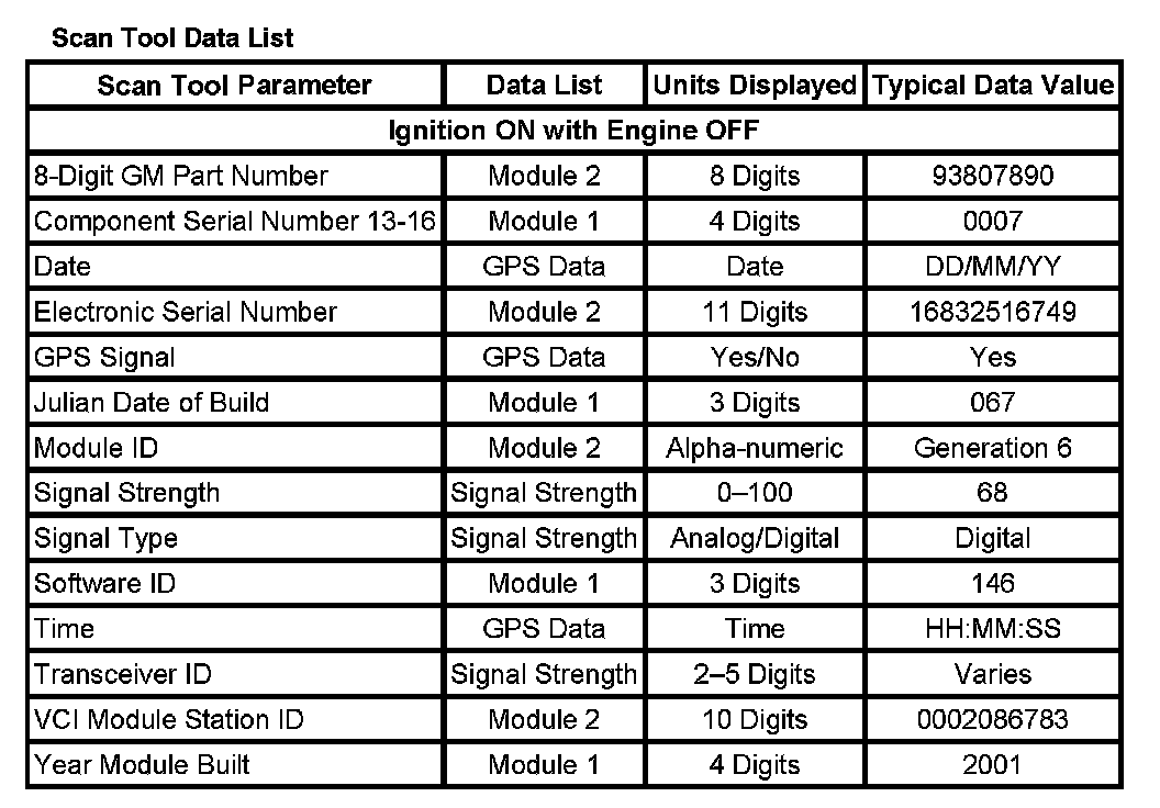 Scan Tool Data List: