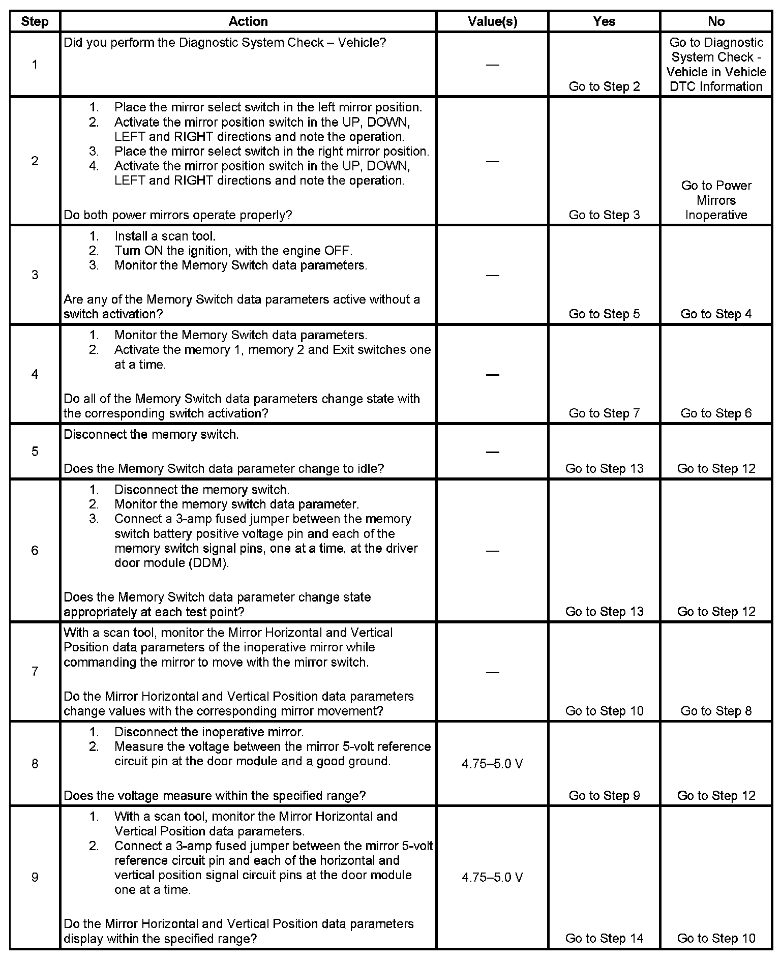 Power Mirrors - Memory Functions Inoperative