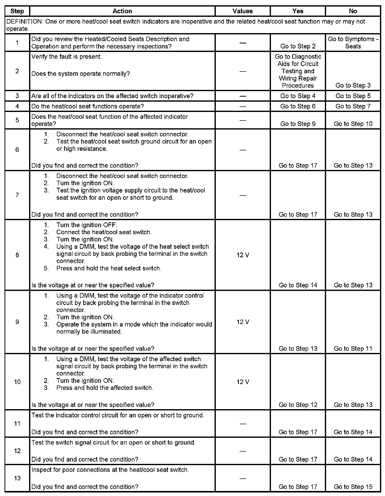 Heated/Cooled Seat Switch Indicator Malfunction
