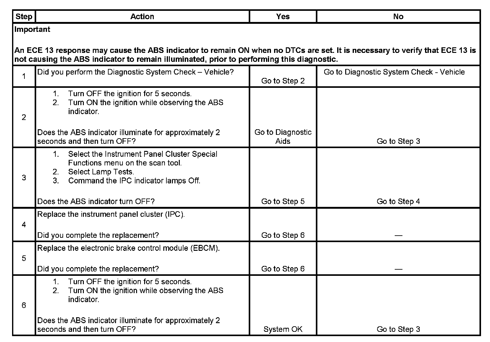 3. This step tests if the IPC is able to turn OFF the ABS indicator.