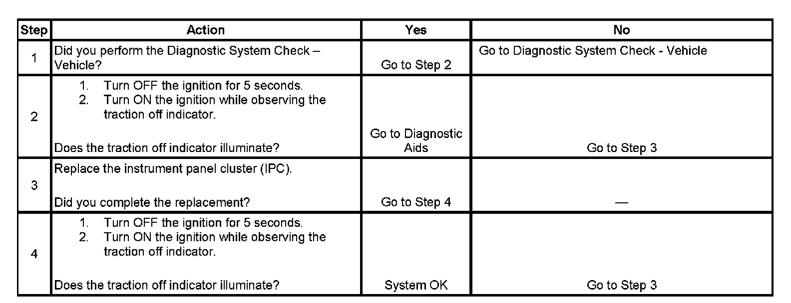 2. This step tests if the IPC is able to illuminate the traction off indicator during the bulb check.