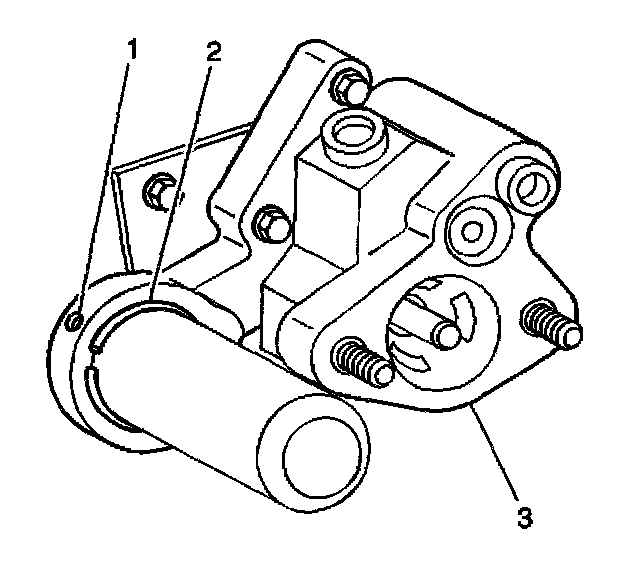 7. Rotate the retaining ring (2) until either end of the ring is under the access hole (1).