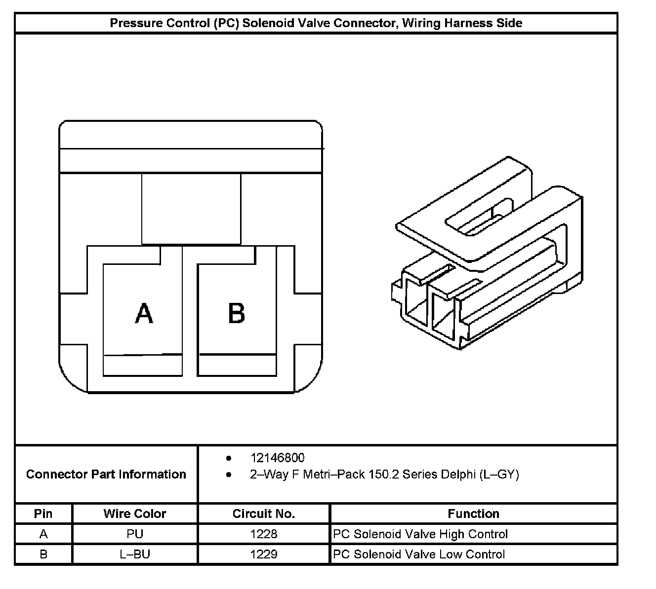 Pressure Control (PC) Solenoid Valve Connector, Wiring Harness Side:
