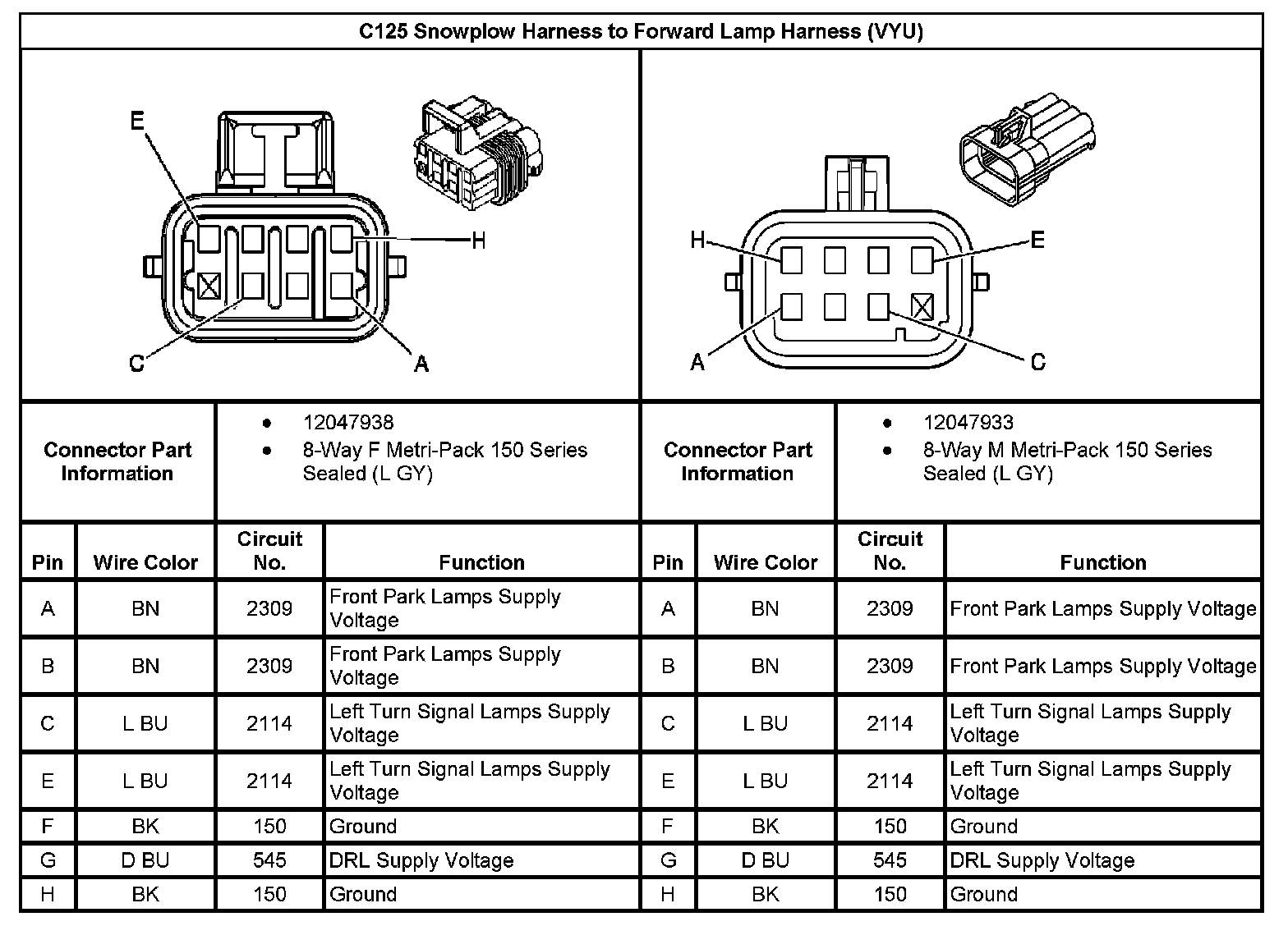 C125 Snowplow Harness To Forward Lamp Harness (With RPO Code VYU):