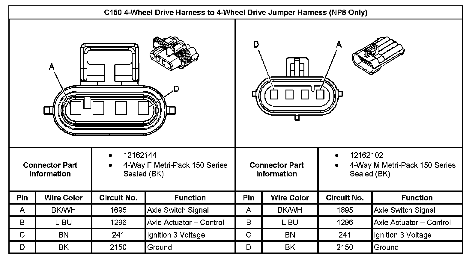 C150 4-Wheel Drive Harness To 4-Wheel Drive Jumper Harness (With RPO Code NP8 Only):