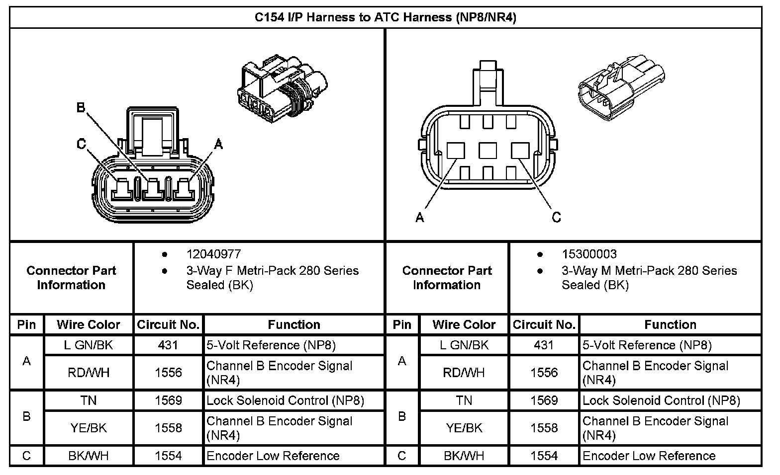 C154 I/P Harness To ATC Harness (With RPO Code NP8/NR4):