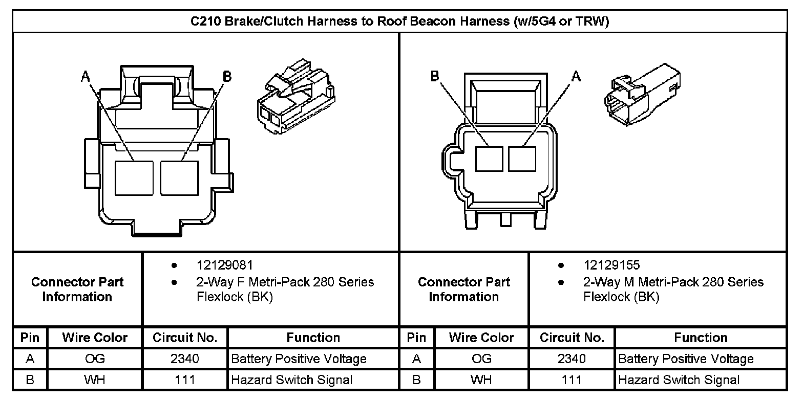C210 Brake/Clutch Harness To Roof Beacon Harness (With RPO Code 5G4 Or TRW):