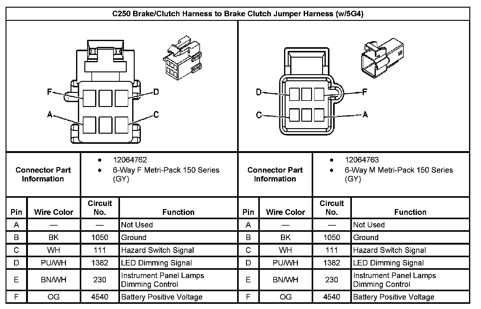 C250 Brake/Clutch Harness To Brake Clutch Jumper Harness (With RPO Code 5G4):
