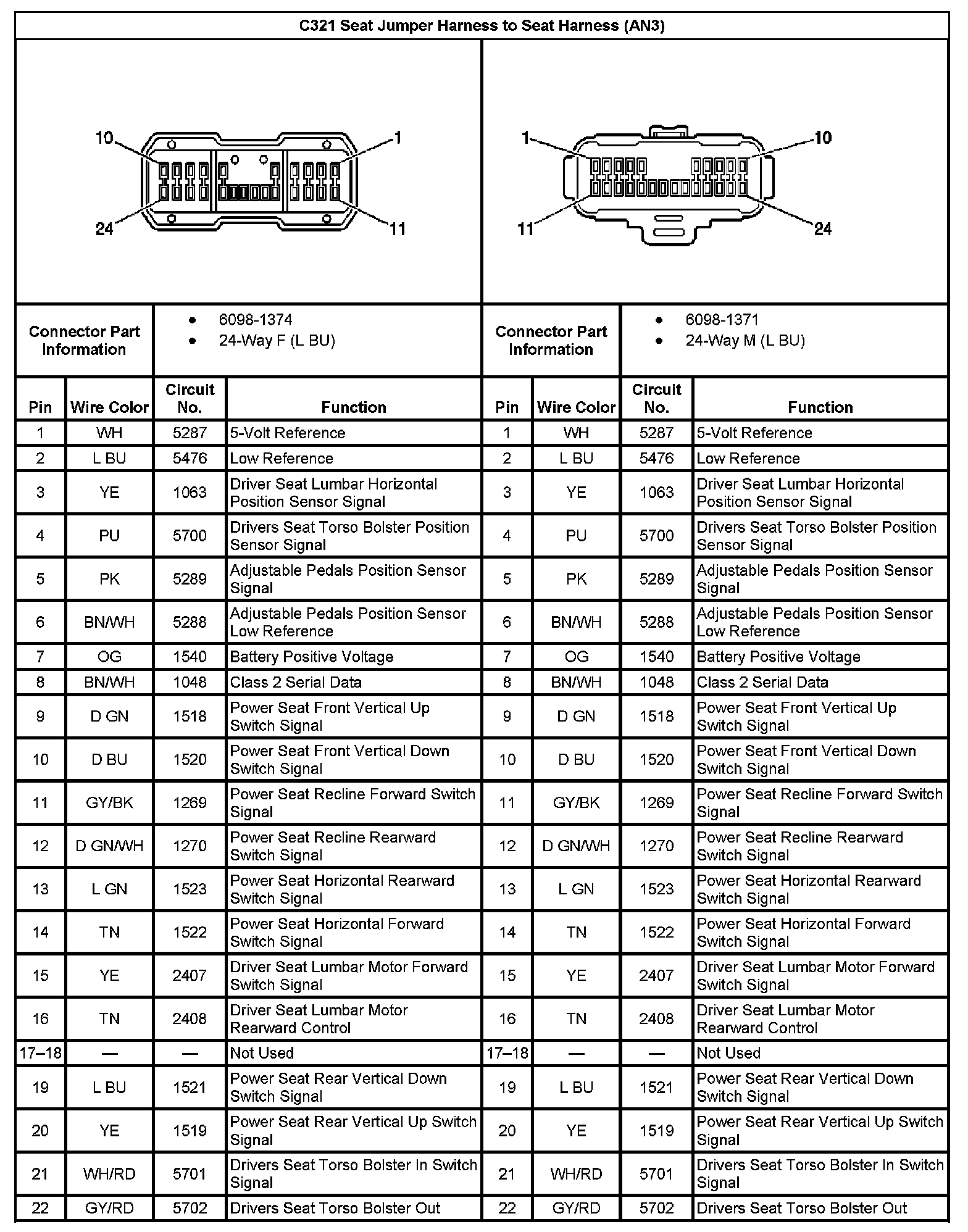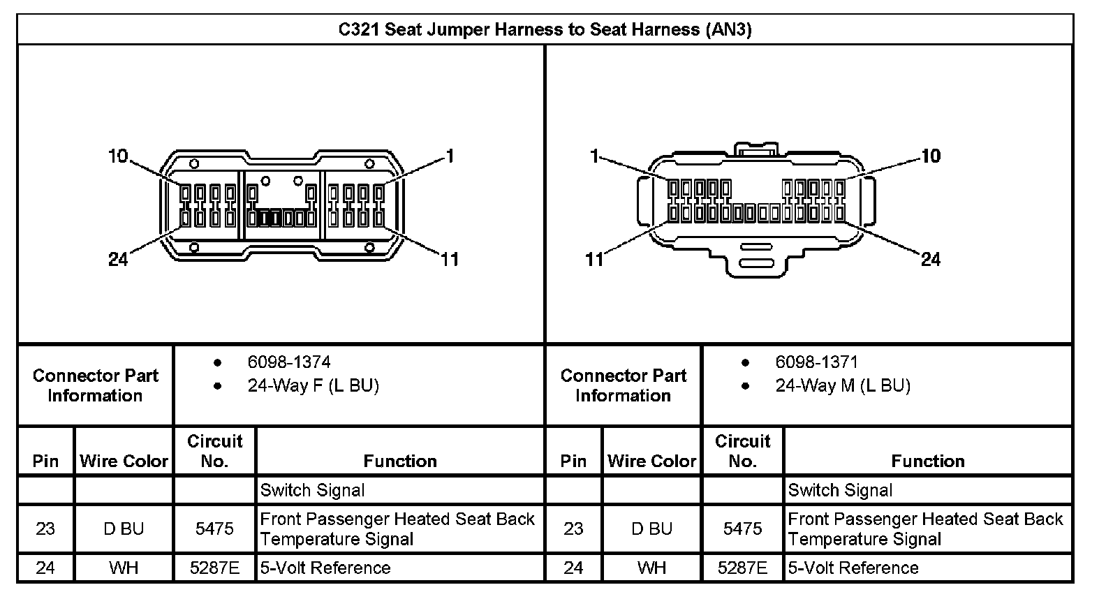 C321 Seat Jumper Harness To Seat Harness (With RPO Code AN3) Part 1: