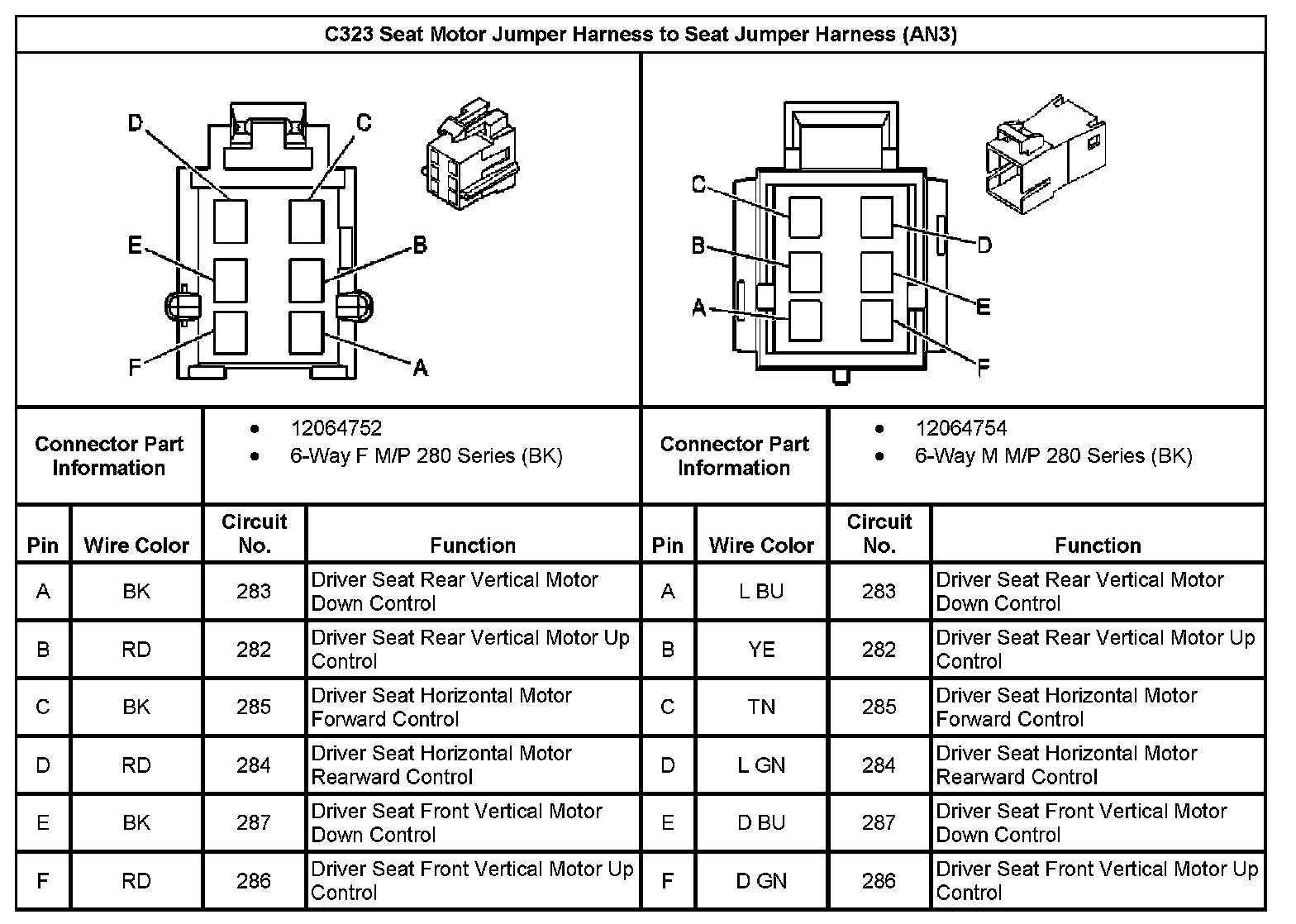 C323 Seat Motor Jumper Harness To Seat Jumper Harness (With RPO Code AN3):