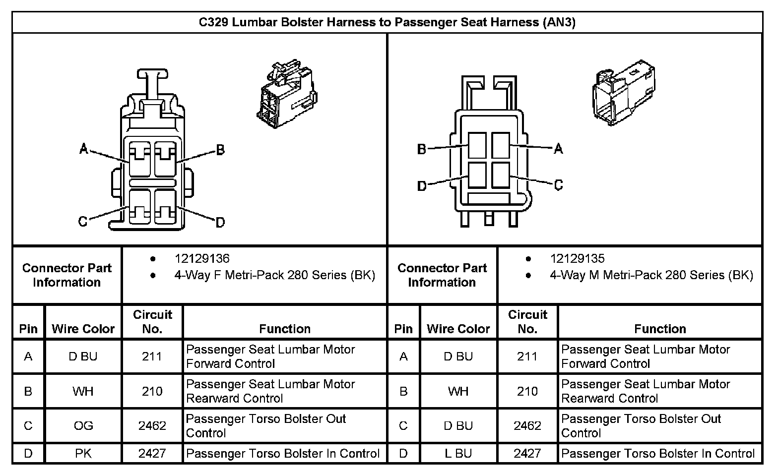 C329 Lumbar Bolster Harness To Passenger Seat Harness (With RPO Code AN3):