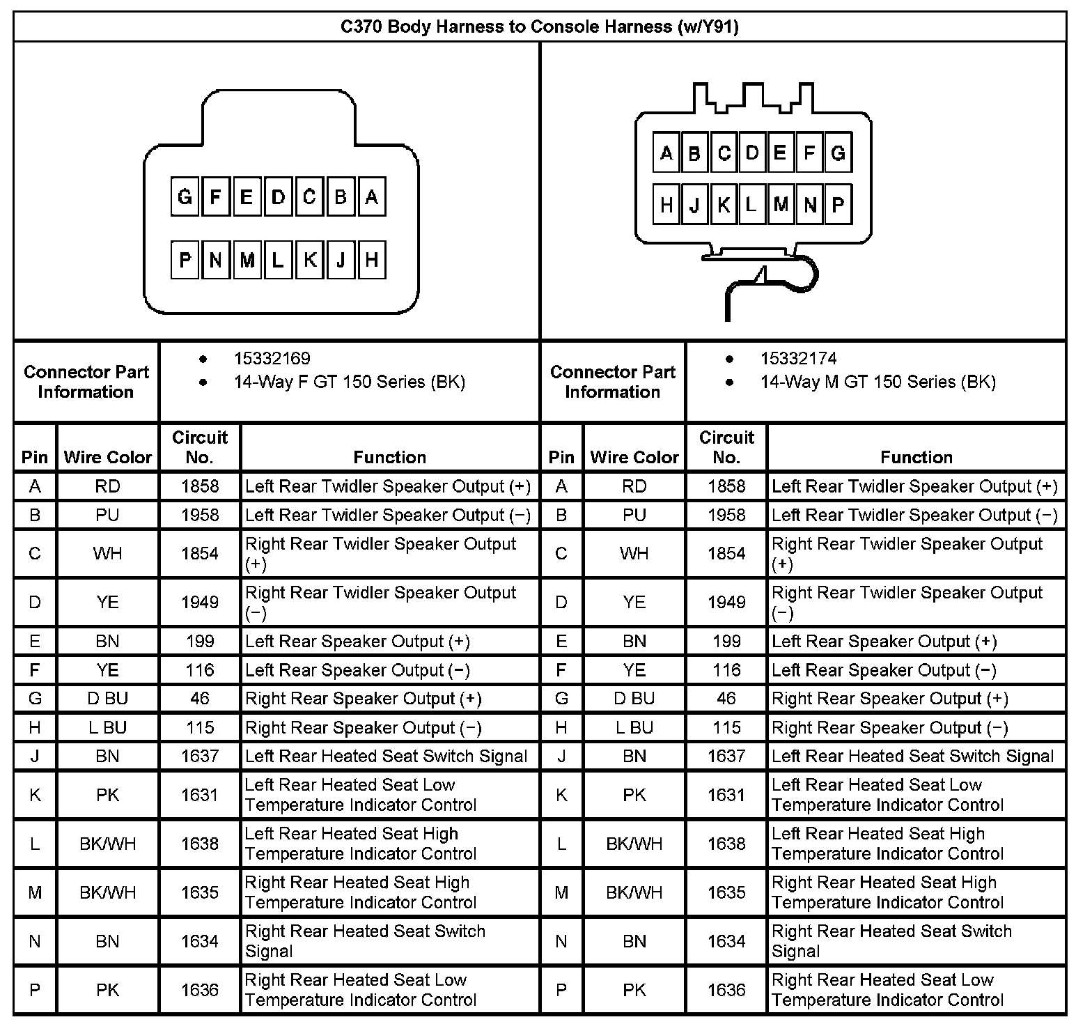 C370 Body Harness To Console Harness (With RPO Code Y91):