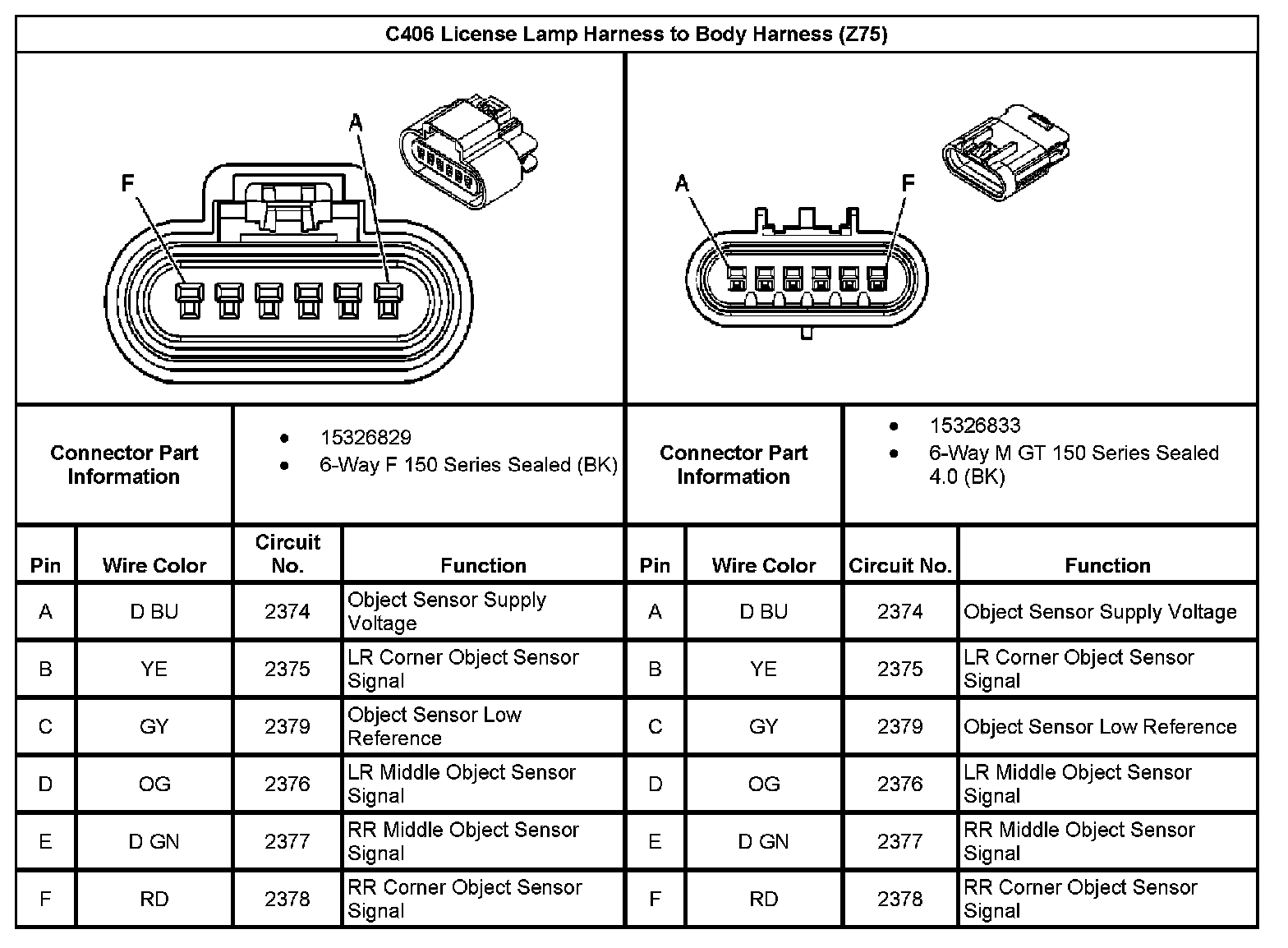 C406 License Lamp Harness To Body Harness (With RPO Code Z75):