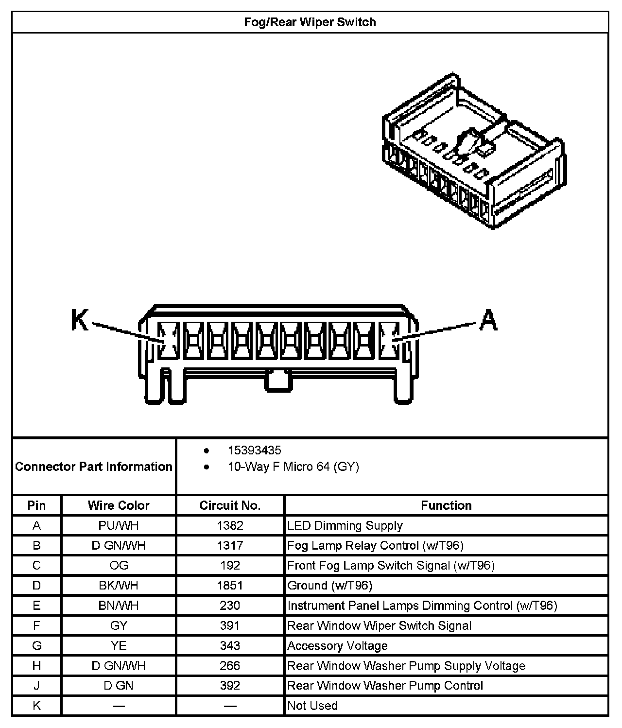 Fog/Rear Wiper Switch: