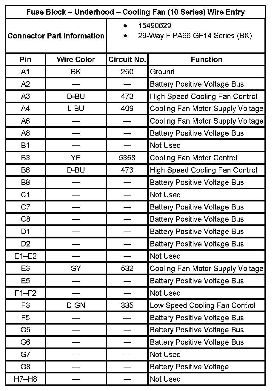 Fuse Block - Underhood - Cooling Fan Wire Entry