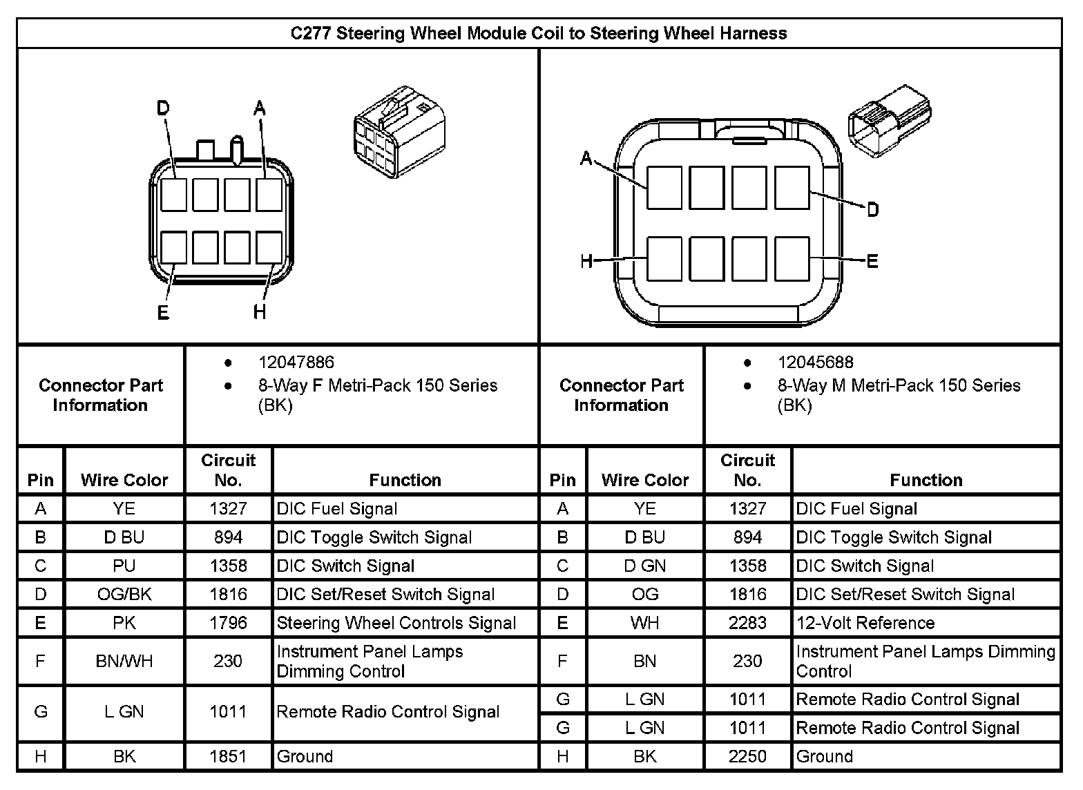 C277 Steering Wheel Module Coil To Steering Wheel Harness: