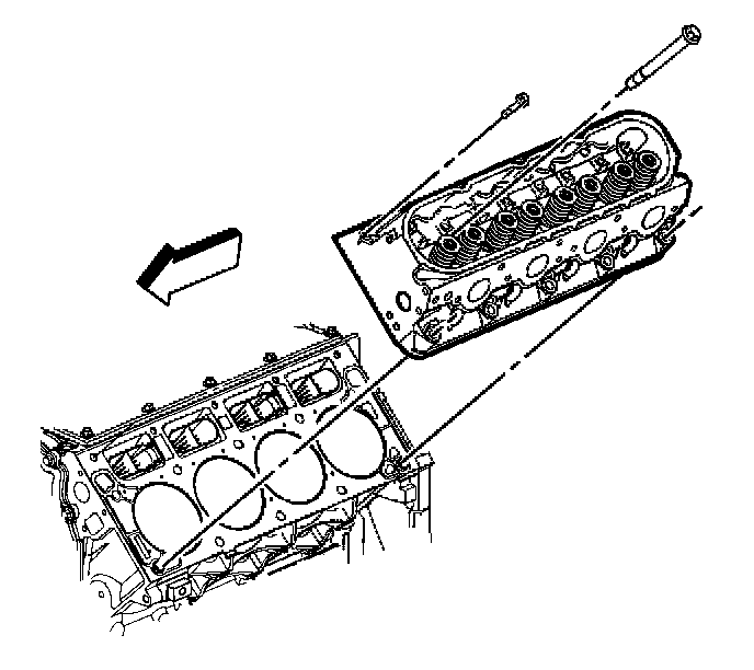 Notice: Clean all dirt, debris, and coolant from the engine block cylinder head bolt holes. Failure to remove all foreign material may result in damaged threads, improperly tightened fasteners or damage to components.