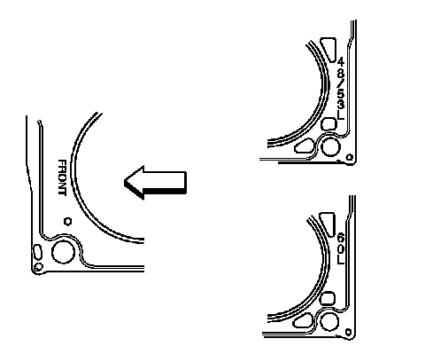 ^ The cylinder head gaskets must be installed in the proper direction and position.
