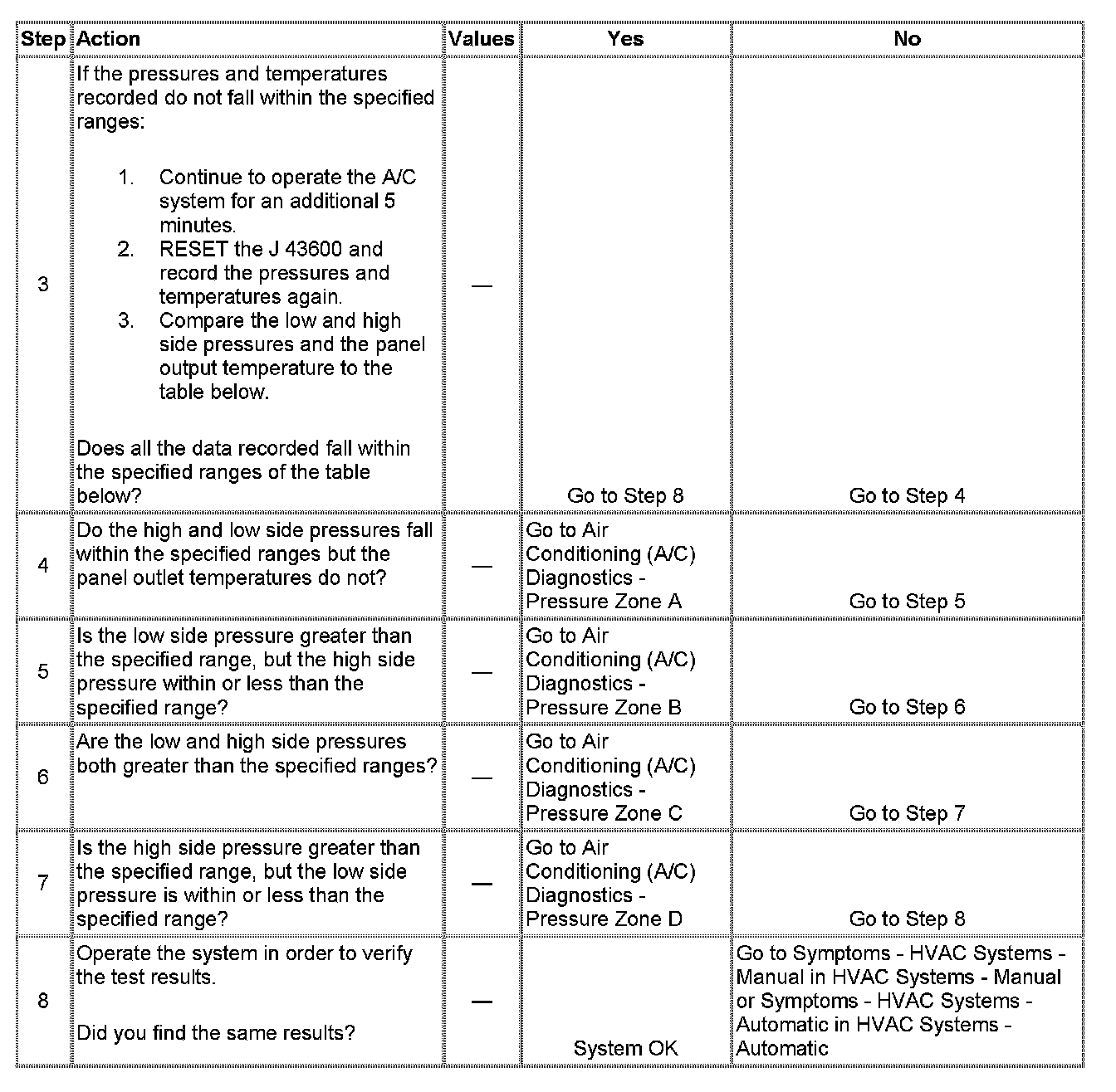 1. This step determines if the A/C system has at least the minimum refrigerant charge required to operate the system without damage.