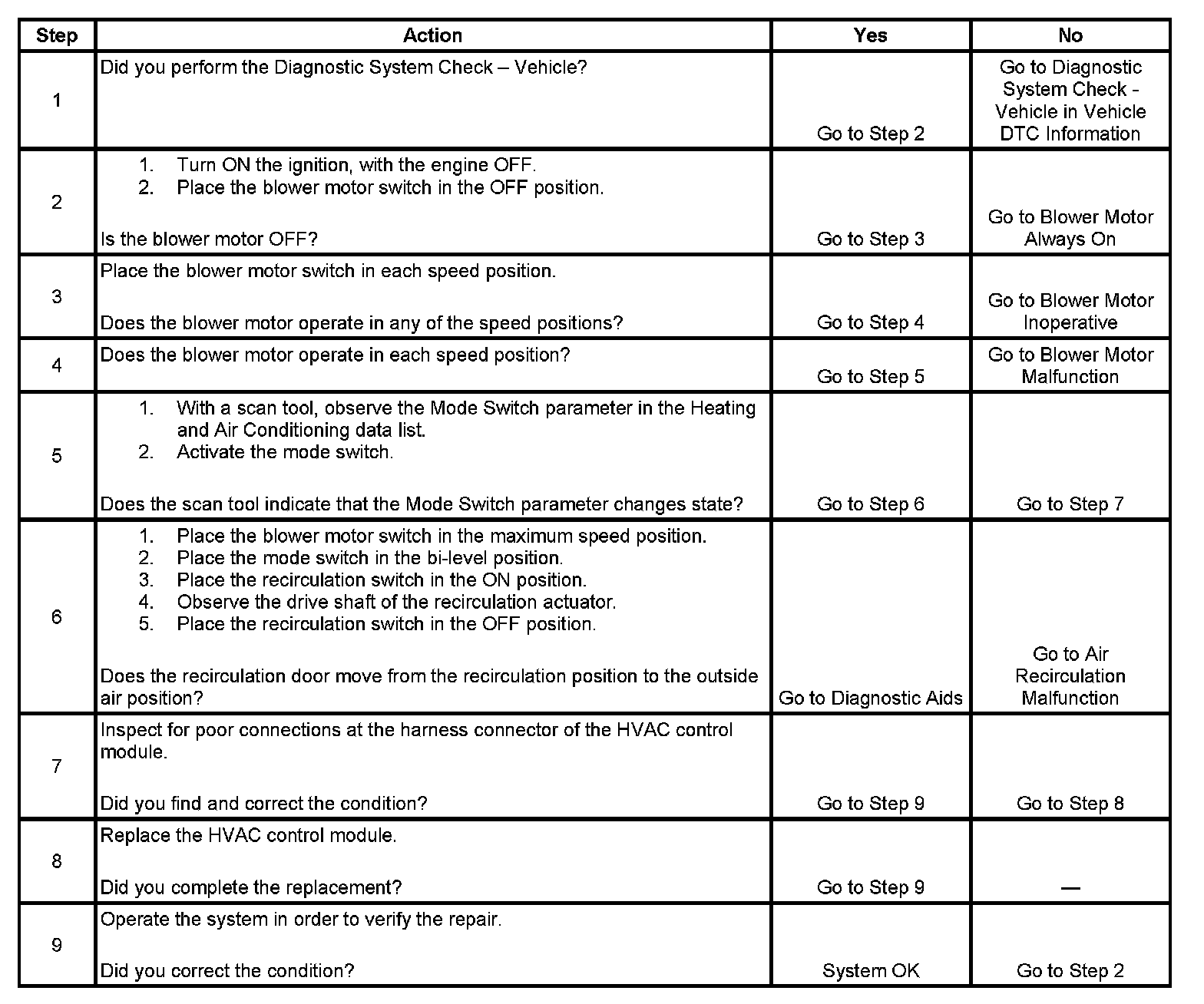 - The condition may be intermittent. Refer to Testing for Intermittent Conditions and Poor Connections in Diagnostic Aids.