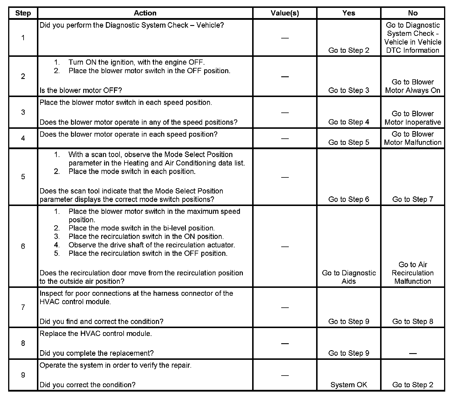 - The condition may be intermittent. Refer to Testing for Intermittent Conditions and Poor Connections in Diagnostic Aids.