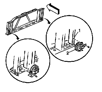 8. Remove the horn (2) from the radiator support (1).