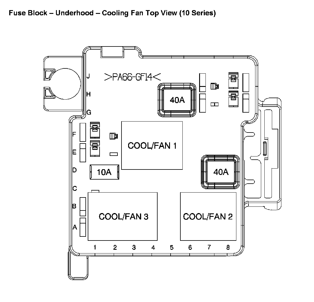 Underhood Fuse Block - Cooling Fan - Top View
