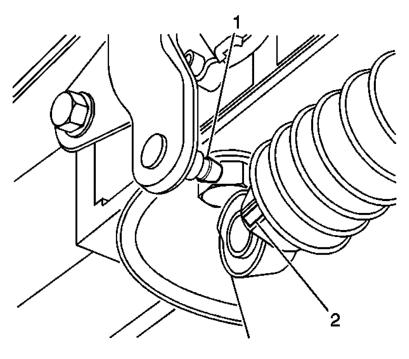 17. Connect the wire harness clip (2) to the bracket on the left side of the transmission.
