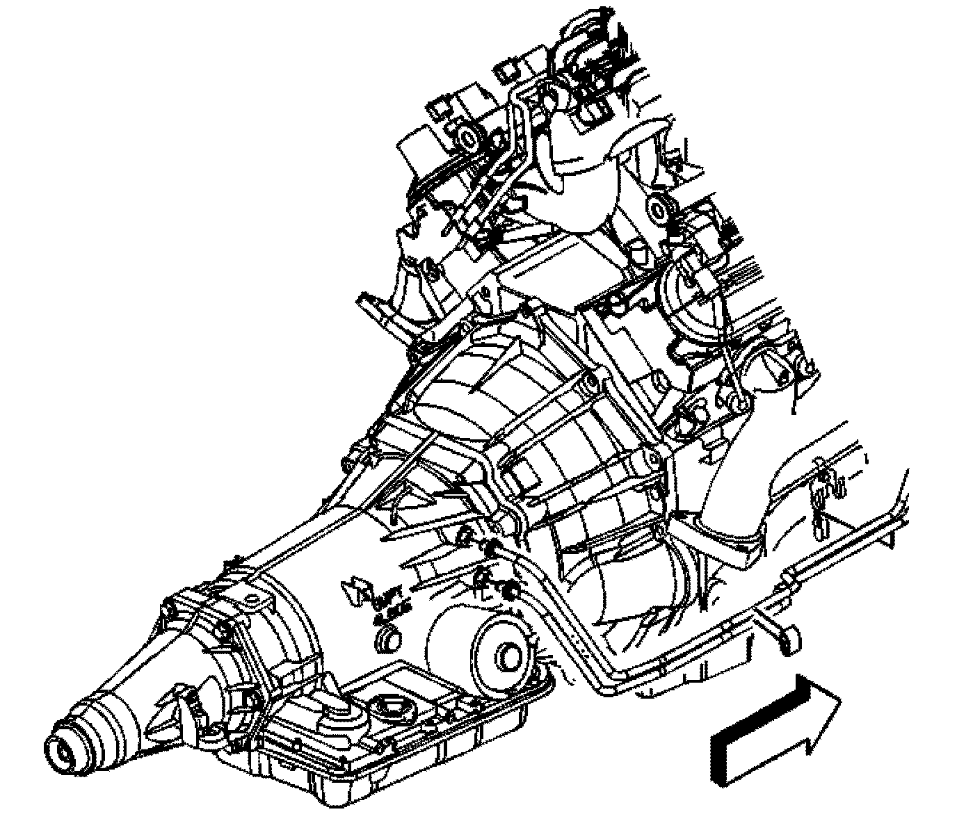 2. Raise the transmission into place and remove the J 21366 from the transmission.