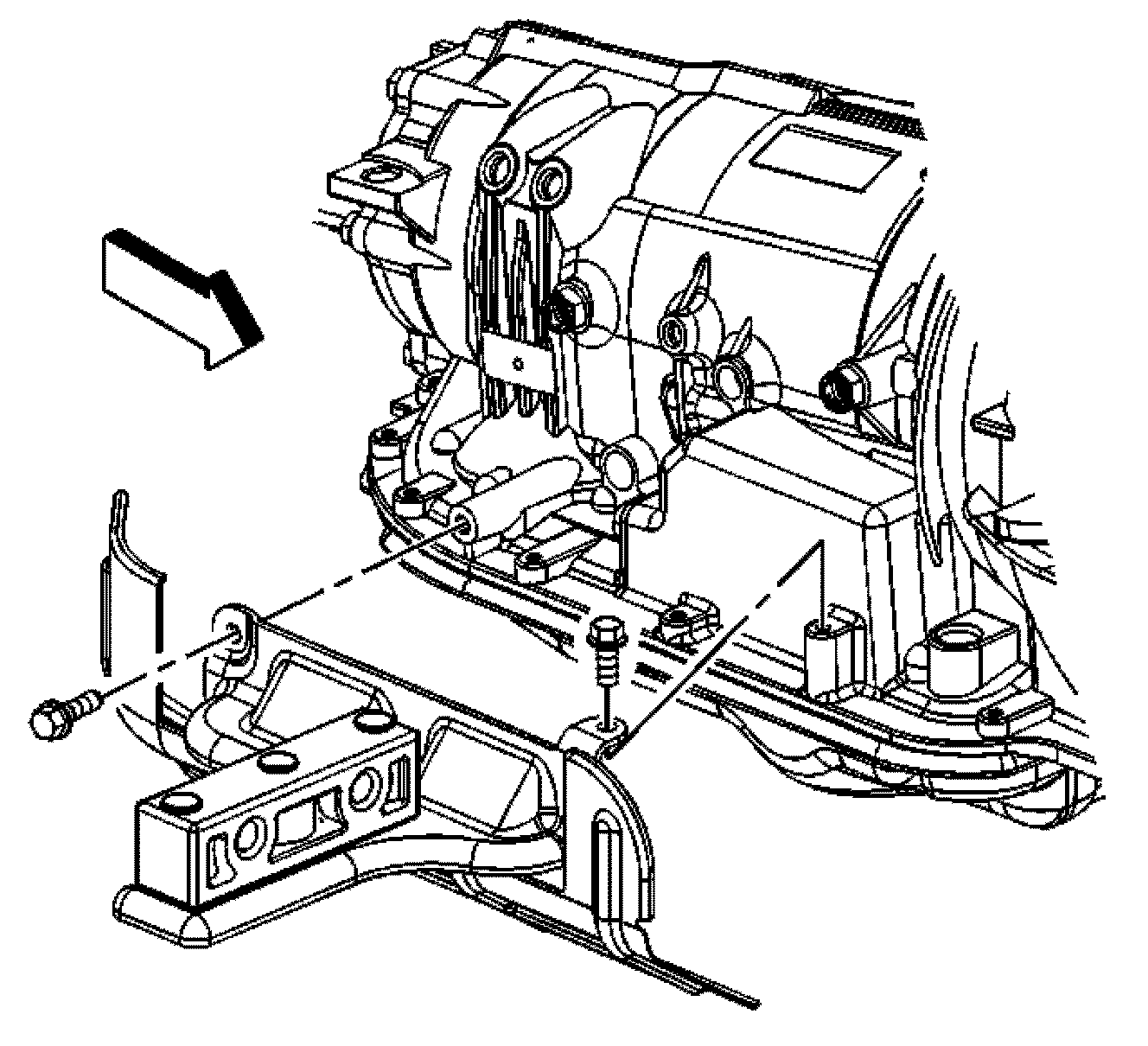 23. If equipped with a 6.0L or 8.1L engine, remove the exhaust hanger mounting bracket bolts and bracket.