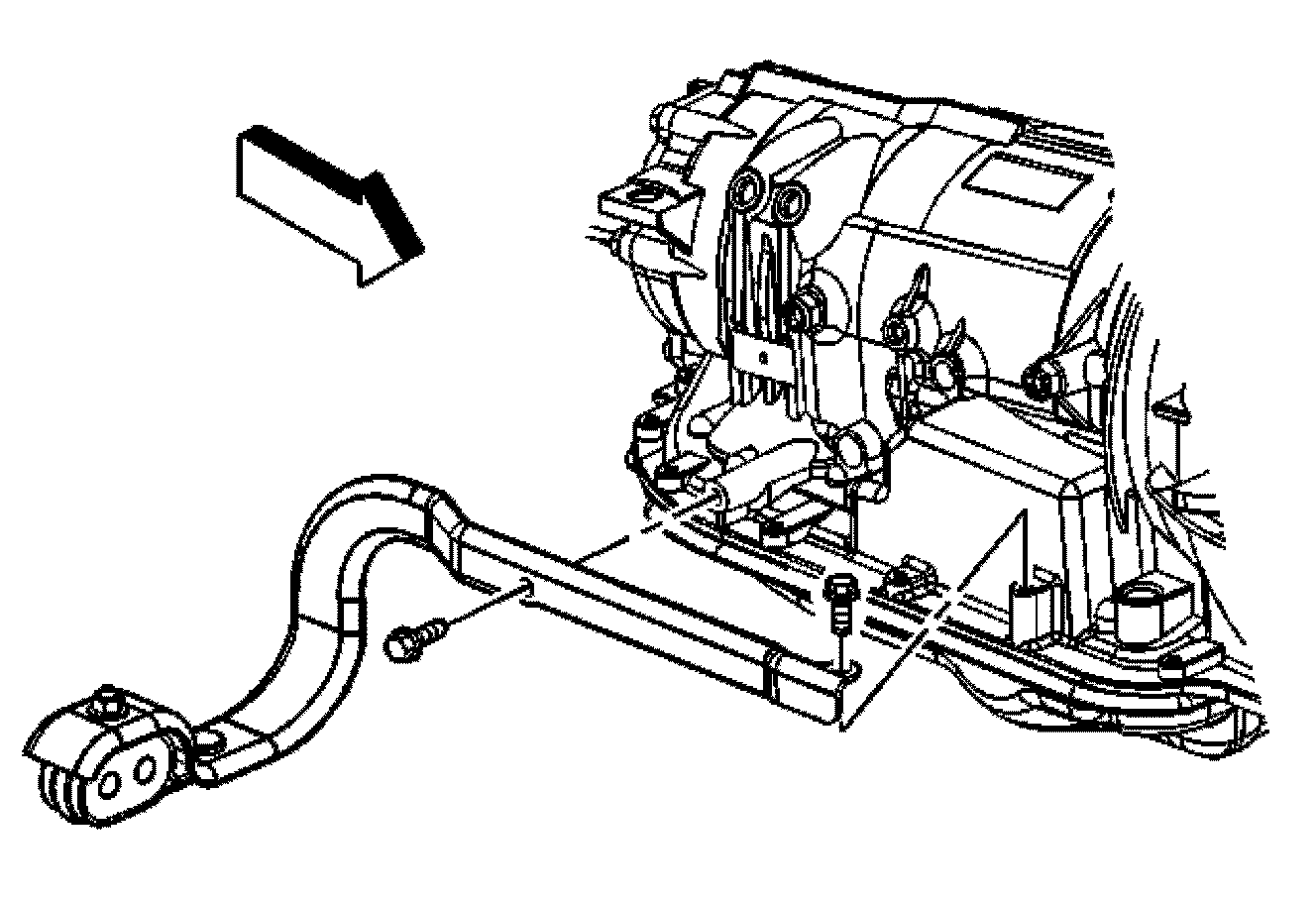 9. If equipped with a 6.0L engine, install the exhaust hanger mounting bracket and bolts.