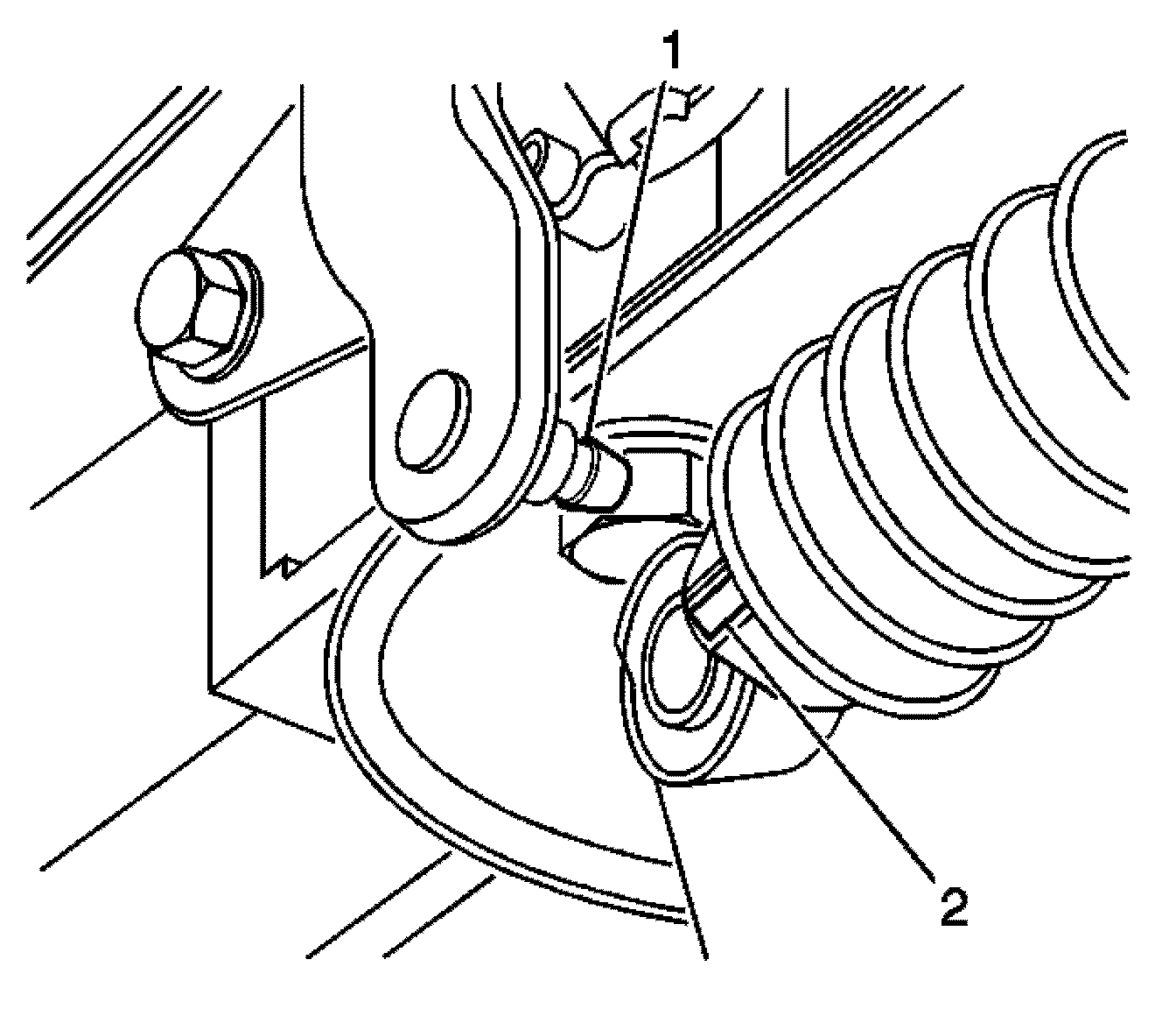 13. Remove the range selector cable end (2) from the transmission range selector lever ball stud (1).