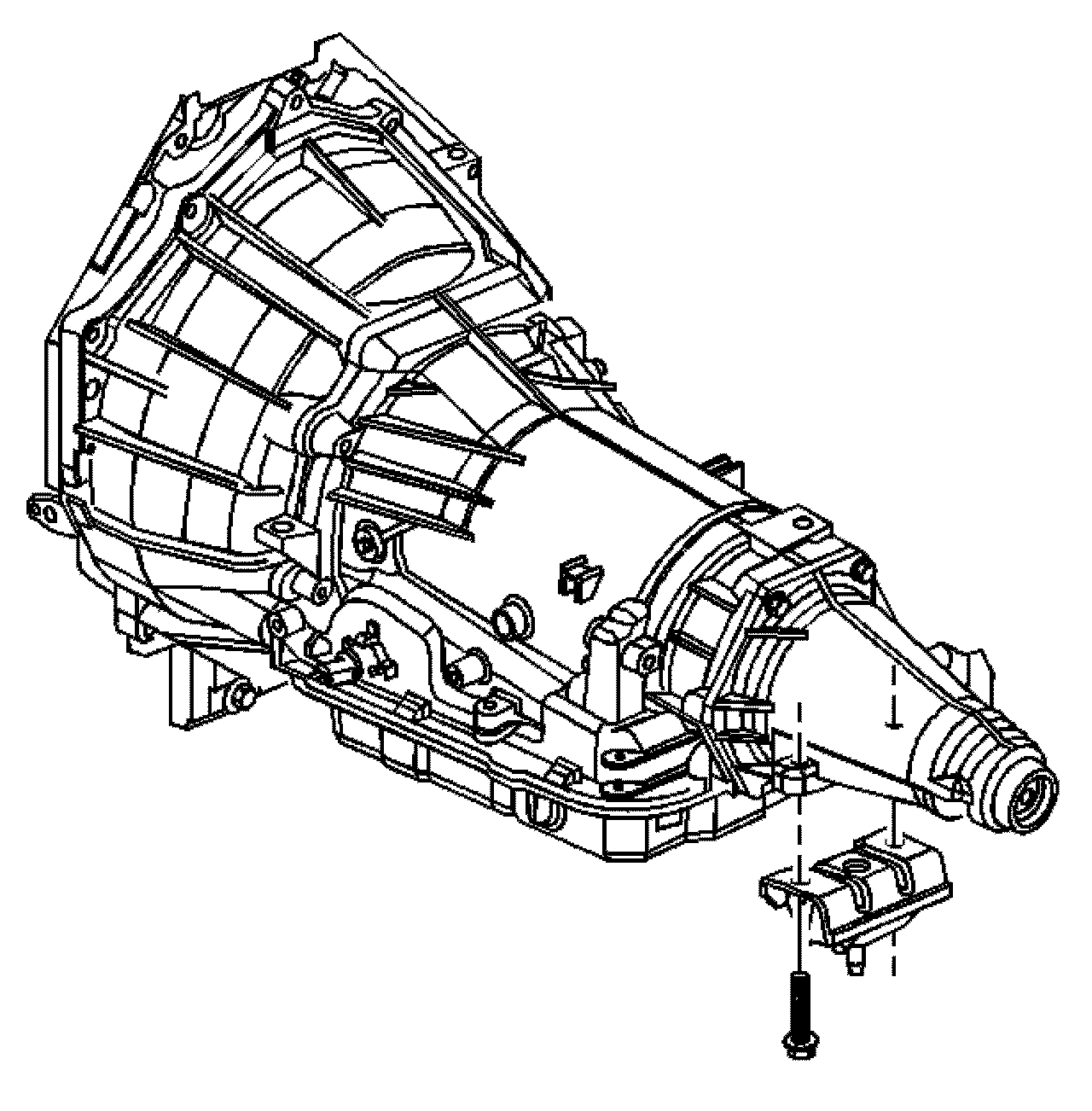 8. If equipped with a 6.0L or 8.1L engine, install the exhaust hanger mounting bracket and bolts.