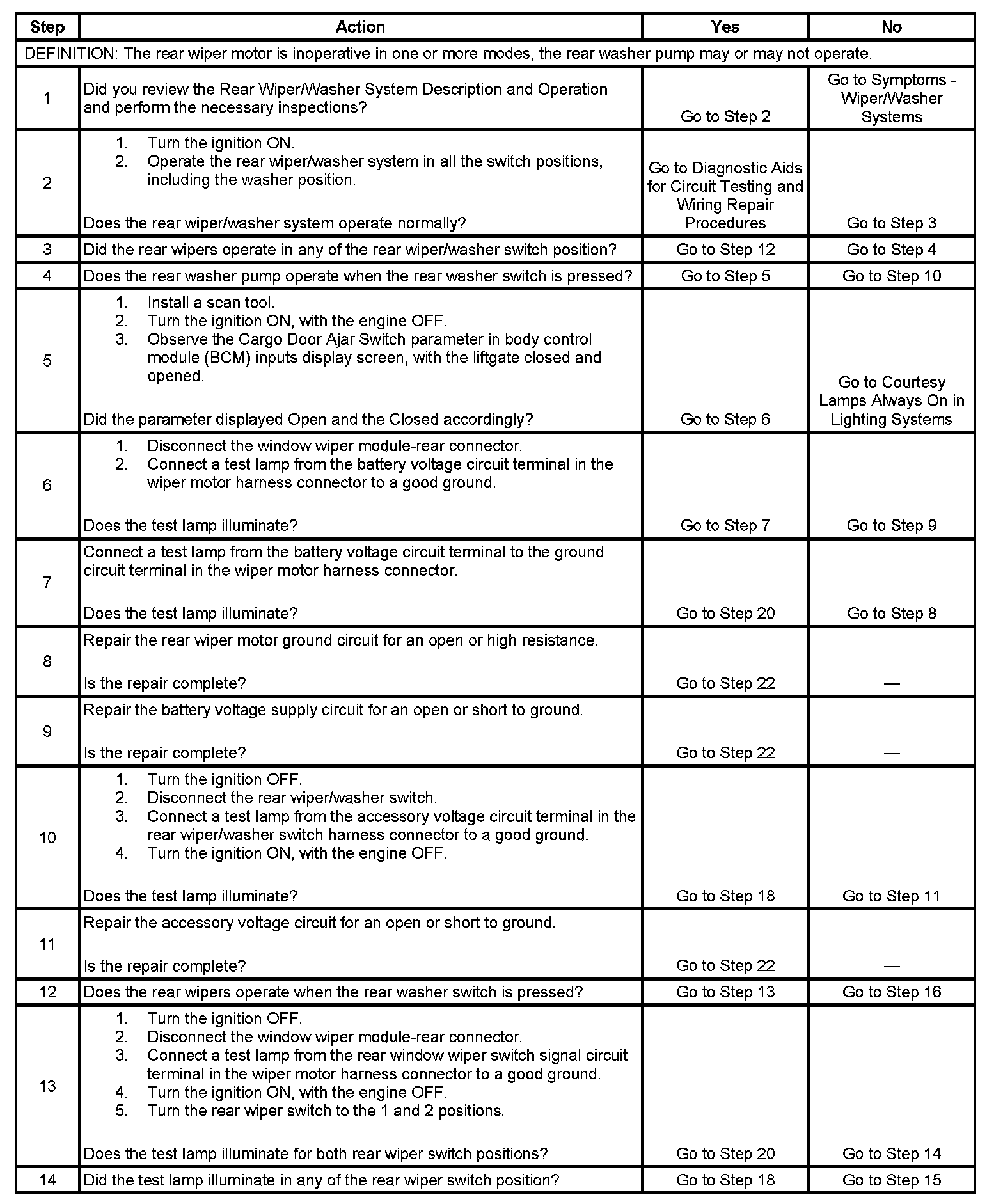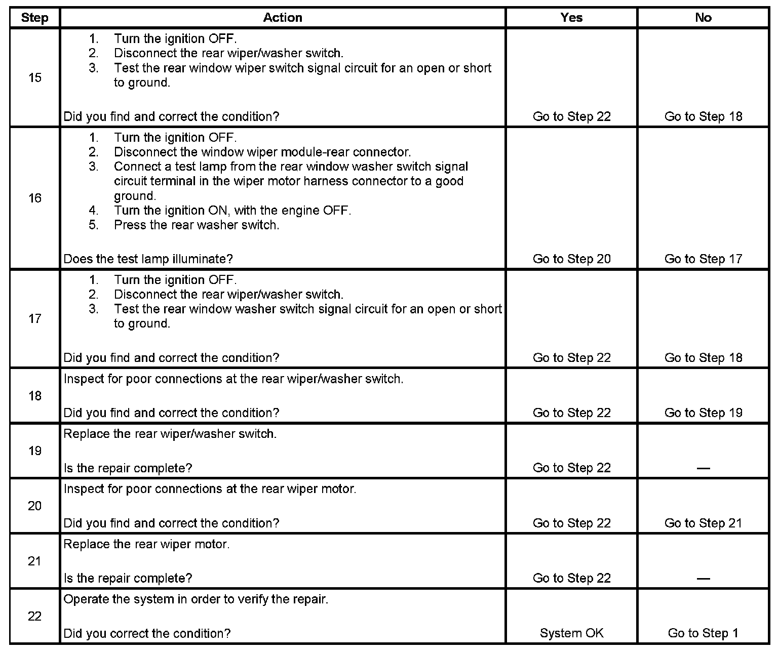 Wiper Inoperative - Rear