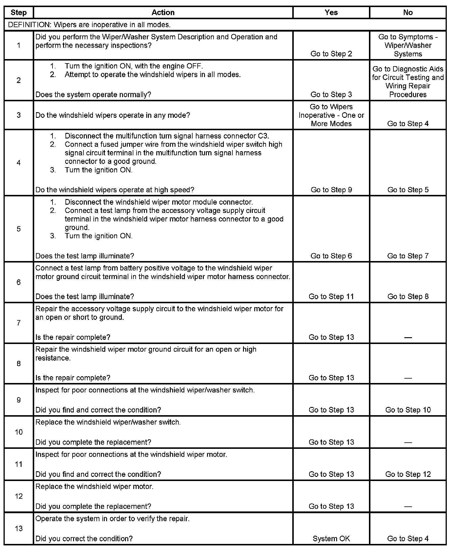 Wipers Inoperative - All Modes