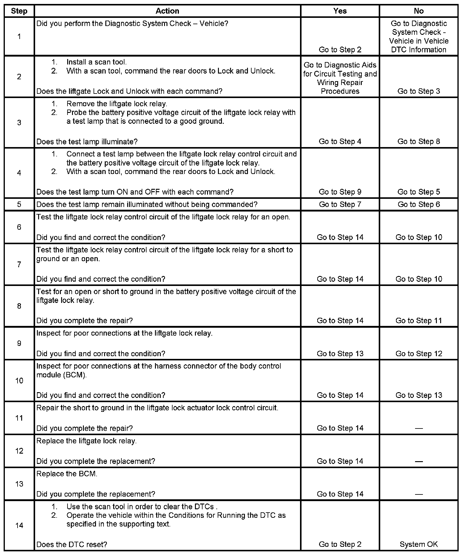 - If an open condition is present on the liftgate lock relay control circuit, the liftgate will unlock but not lock.