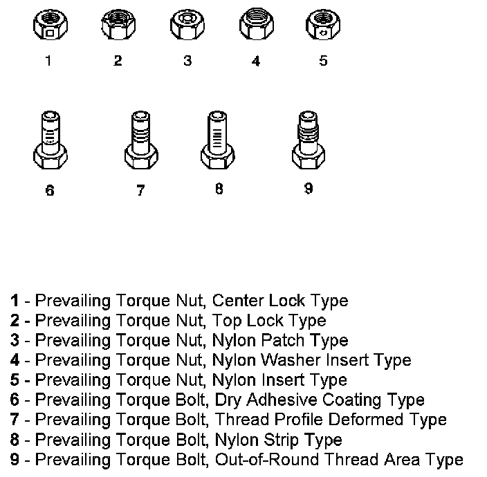 These fasteners accomplish the thread interface by the presence of a thread-locking compound on the fastener threads. Refer to the appropriate repair procedure in order to determine if the fastener may be reused and the applicable thread-locking compound to apply to the fastener.