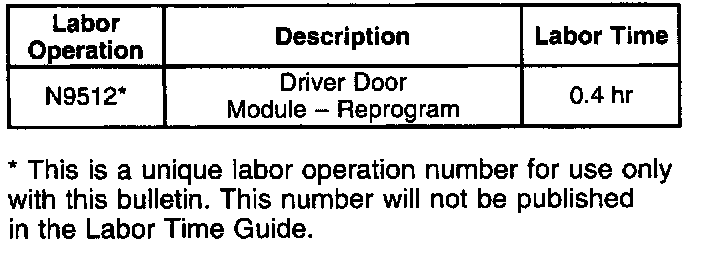 Technicians are to reprogram the driver door module (DDM) with an updated software calibration. This new service calibration was released with TIS satellite data update version 8.5 available August 23, 2004. As always make sure your Tech 2(R) is updated with the latest software version.