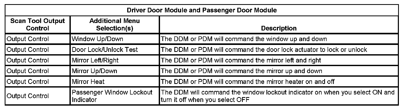 Scan Tool Output Controls - Driver Door Module and Passenger Door Module