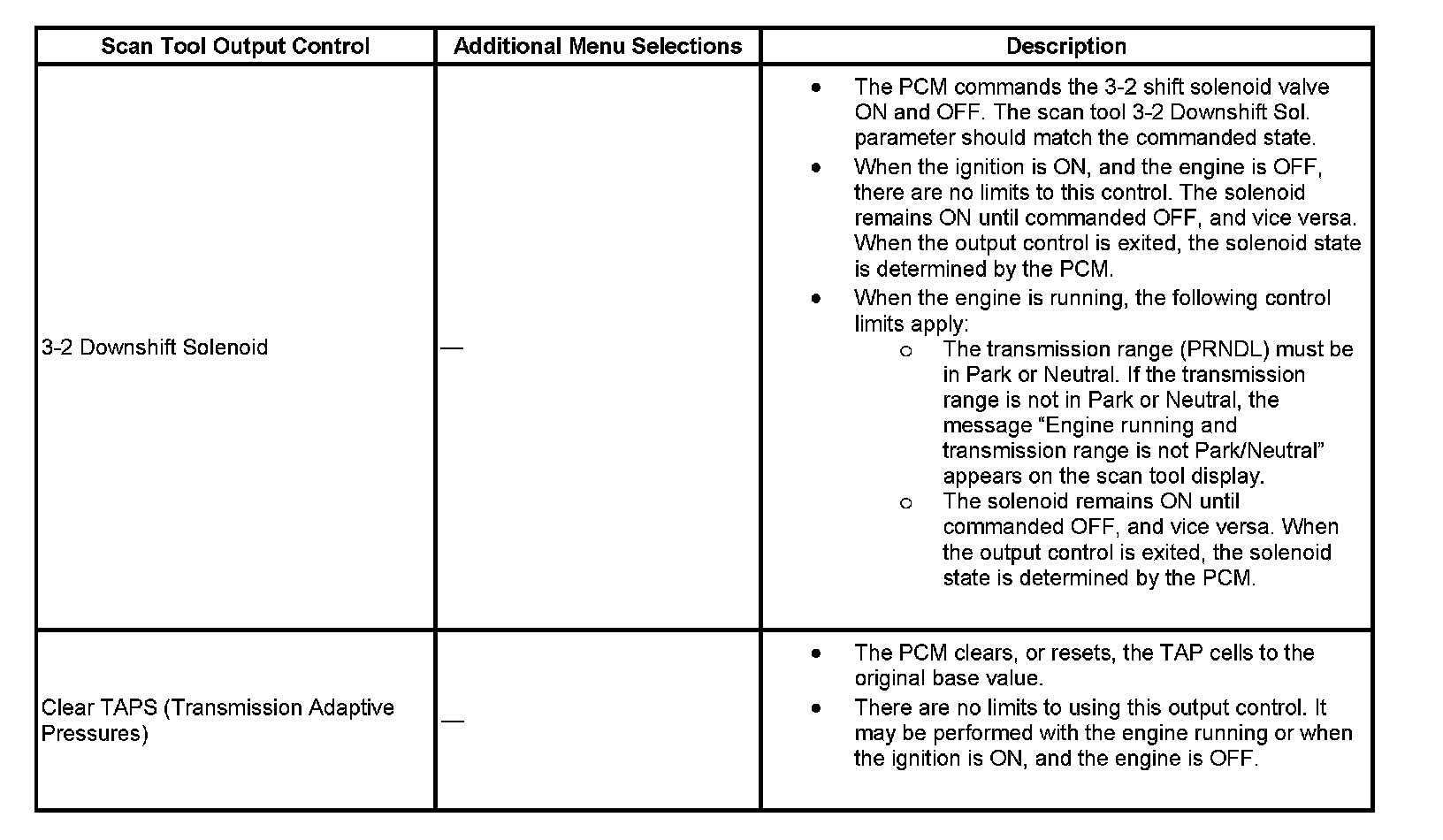 Scan Tool Output Controls