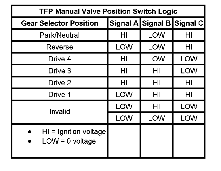 Transmission Fluid Pressure (TFP) Manual Valve Position Switch Logic