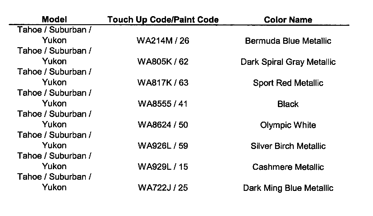 Paint Code Charts
