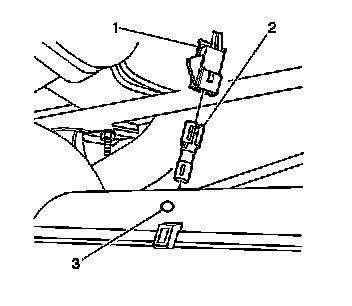 3. Remove the upper right air temperature sensor (1) from the air distributor duct (3).