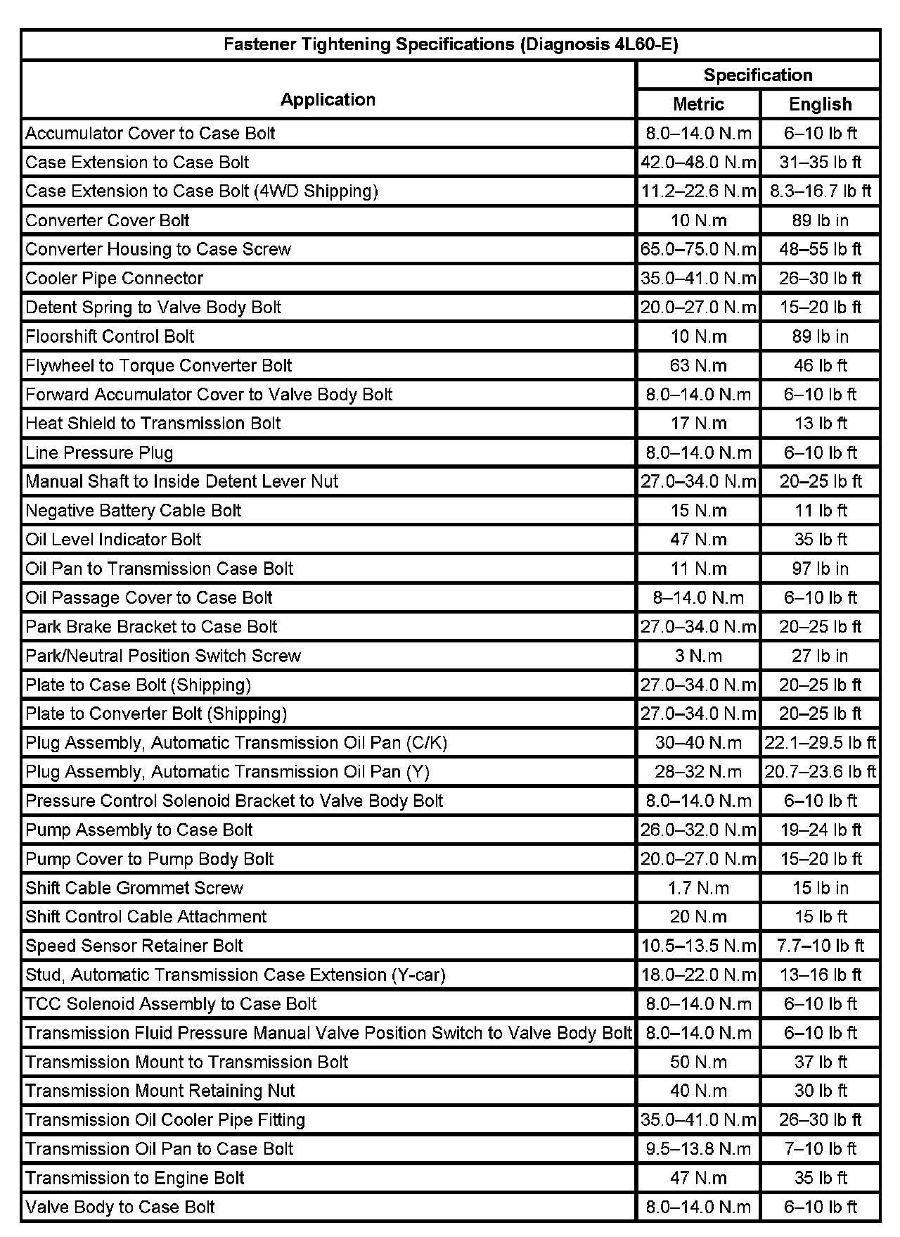 Fastener Tightening Specifications