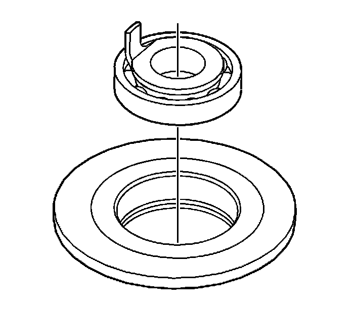 58. Using a suitable press plate and a hydraulic press, press the clutch bearing inner support in the clutch apply plate bearing. Ensure the bearing inner bearing race is supported.