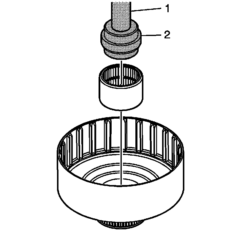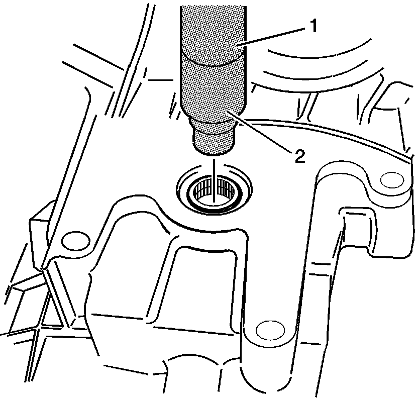 19. Using the J 8092 (1) and the J 45383 (2), install the pilot bearing in the input shaft.