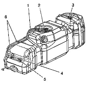 3. Disconnect the fuel feed pipe (4) and return pipe (5) from the fuel tank clips (6).