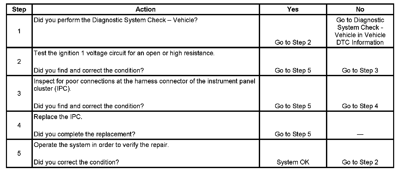 - When the instrument cluster detects low voltage at the ignition 1 voltage circuit, the instrument cluster will not communicate with the scan tool, and the odometer and PRNDL displays will not be illuminated. The season odometer will display if the trip reset switch is pressed, and the instrument cluster will communicate with the scan tool until the trip reset switch is released.